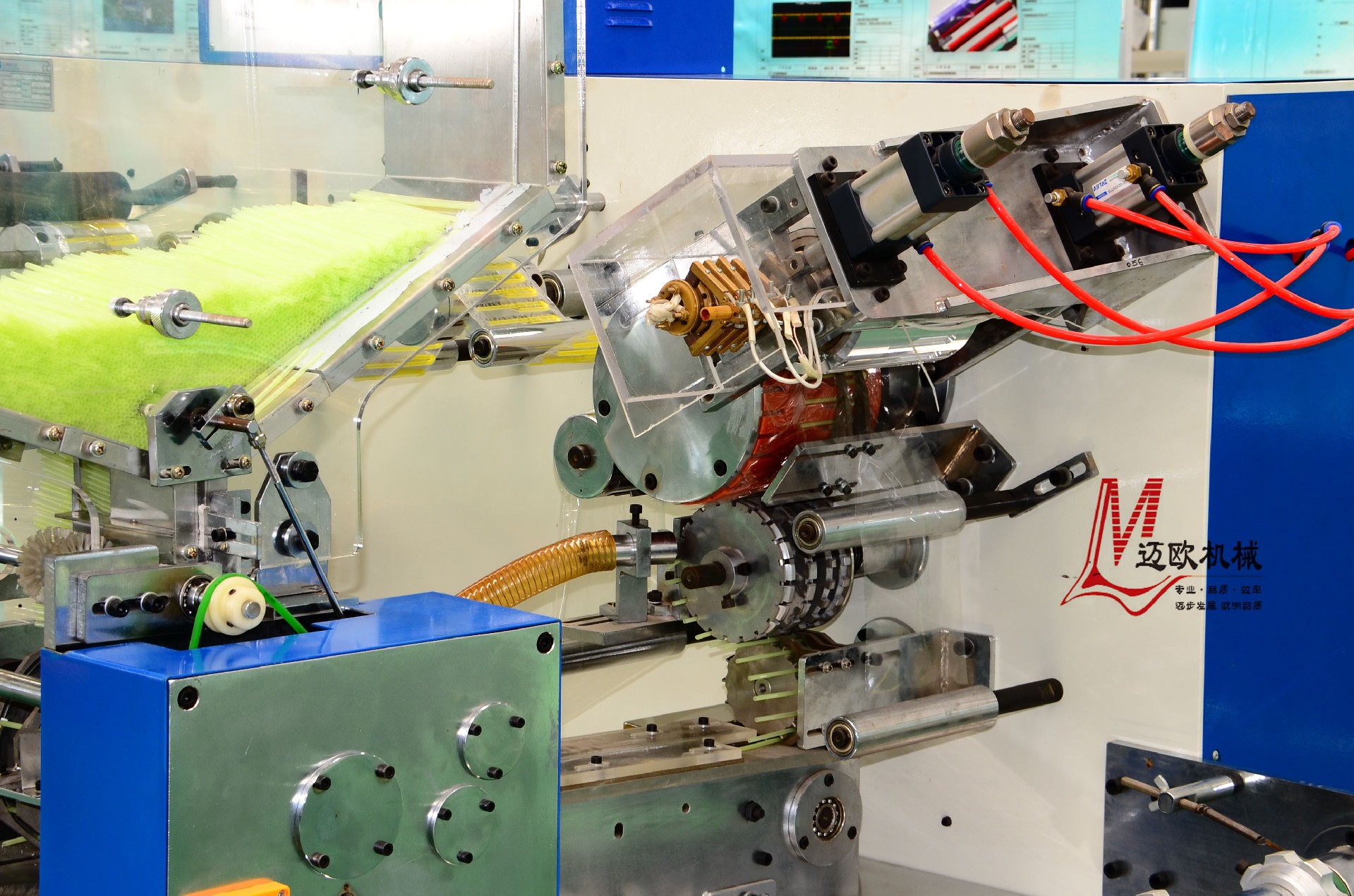 1、單支連排包裝,折彎、切斜口、充填、封壓、包裝一次完成