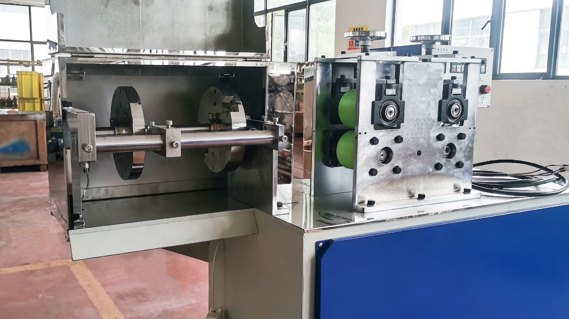膠輪牽引切割機(jī)是專門用于切割生產(chǎn)不同規(guī)格口徑吸管的配套切割裝置,采用雙電機(jī)變頻牽引。雙刀盤切割,切割角度有90°/60°/45°吸管端部切口平整美觀。可選配有不銹鋼接料斗的皮帶理管裝置組合使用,大大降低工人勞動(dòng)強(qiáng)度,一人可操作多臺設(shè)備。