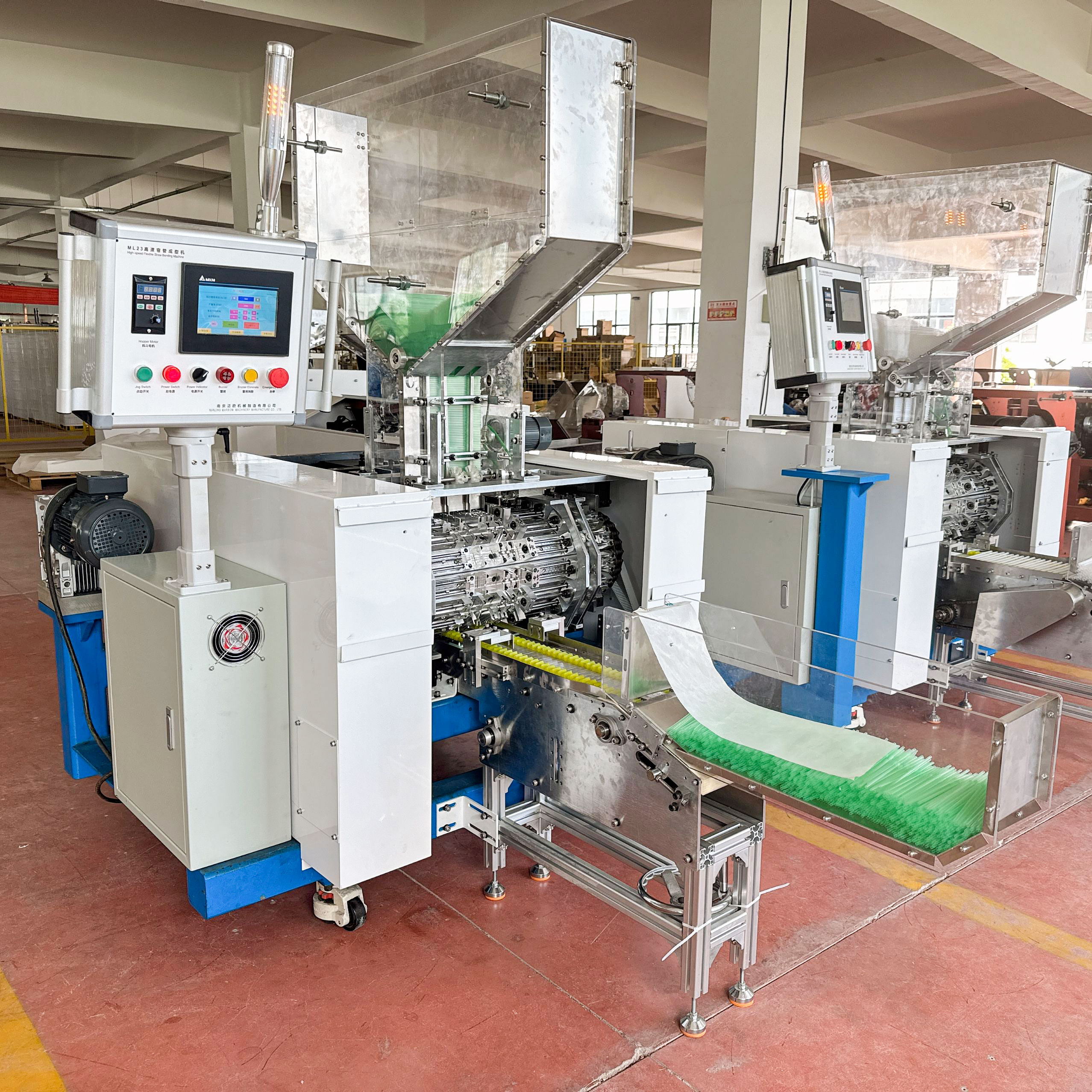 ML23系列全自動(dòng)可彎吸管成形機(jī)是將直管坯加工成可彎吸管的一種自動(dòng)化設(shè)備。 直管坯加入成形機(jī)上部料斗,經(jīng)45組成形牙針和1對(duì)成形牙輪連續(xù)動(dòng)作后將彎管成品自動(dòng)輸送出來,具有連續(xù)高效生產(chǎn)的能力。通過更換部分零件,可以實(shí)現(xiàn)多種孔徑規(guī)格彎管的生產(chǎn)。